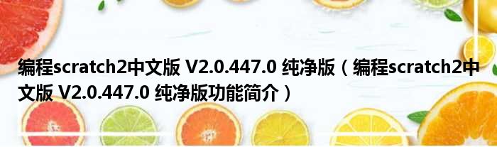 编程scratch2中文版 V2.0.447.0 纯净版(编程scratch2中文版 V2.0.447.0 纯净版功能简介)