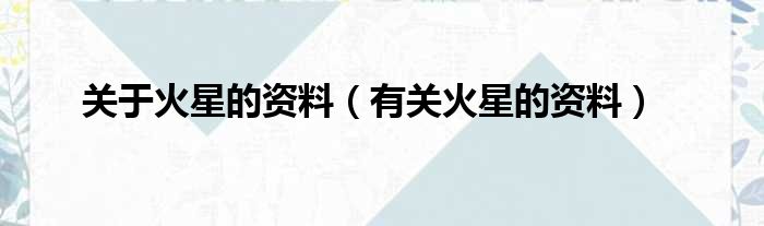 大家好,今天小六子来为大家解答以下的问题,关于关于火星的资料,有关火星的资料这个很多人还不知道,现在让我们一起来看看吧!