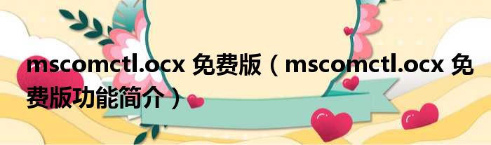 mscomctl.ocx 免费版(mscomctl.ocx 免费版功能简介)