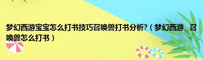 梦幻西游宝宝怎么打书技巧召唤兽打书分析?(梦幻西游 召唤兽怎么打书)