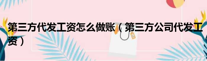 导读 大家好,今天小六子来为大家解答以下的问题,关于第三方代发工资怎么做账,第三方公司代发工资这个很多人还不知道,现在让我们一起来看看吧