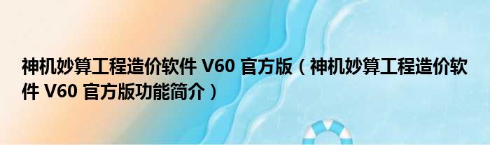 神机妙算工程造价软件 V60 官方版(神机妙算工程造价软件 V60 官方版功能简介)