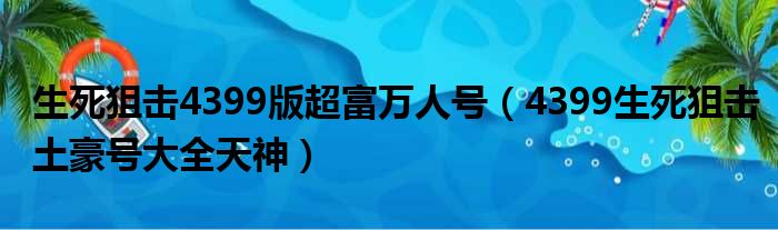 大家好,今天小六子来为大家解答以下的问题,关于生死狙击4399版超富万人号,4399生死狙击土豪号大全天神这个很多人还不知道,现在让我们一起来看看吧!