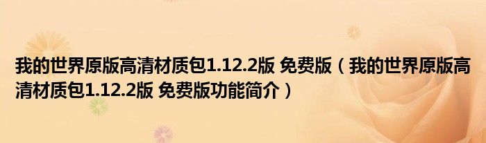 导读 大家好,关于我的世界原版高清材质包1 12 2版 免费版,我的世界原版高清材质包1 12 2版 免费版功能简介这个很多人还不知道,小勒来为大家解