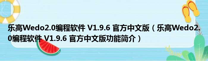 导读 大家好,关于乐高Wedo2 0编程软件 V1 9 6 官方中文版,乐高Wedo2 0编程软件 V1 9 6 官方中文版功能简介这个很多人还不知道,小勒来为大家