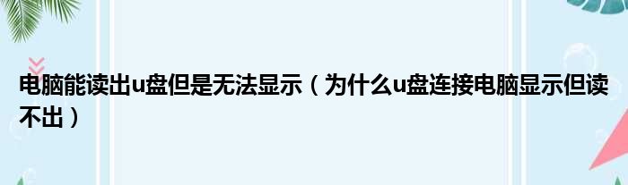 电脑能读出u盘但是无法显示(为什么u盘连接电脑显示但读不出)