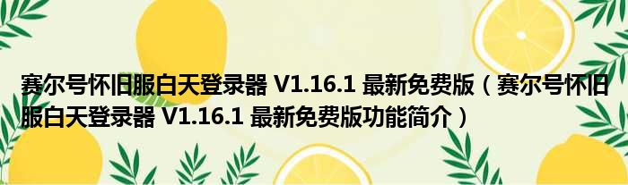 赛尔号怀旧服白天登录器 V1.16.1 最新免费版(赛尔号怀旧服白天登录器 V1.16.1 最新免费版功能简介)