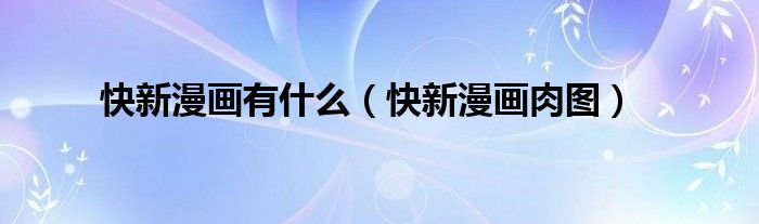 大家好,今天小六子来为大家解答以下的问题,关于快新漫画有什么,快新漫画肉图这个很多人还不知道,现在让我们一起来看看吧!