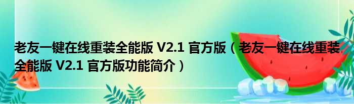 老友一键在线重装全能版 V2.1 官方版(老友一键在线重装全能版 V2.1 官方版功能简介)