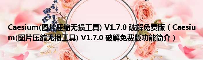 Caesium(图片压缩无损工具) V1.7.0 破解免费版(Caesium(图片压缩无损工具) V1.7.0 破解免费版功能简介)