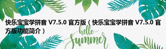 导读 大家好,关于快乐宝宝学拼音 V7 5 0 官方版,快乐宝宝学拼音 V7 5 0 官方版功能简介这个很多人还不知道,小勒来为大家解答以上的问题,现