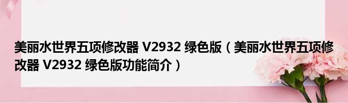 美丽水世界五项修改器 V2932 绿色版(美丽水世界五项修改器 V2932 绿色版功能简介)