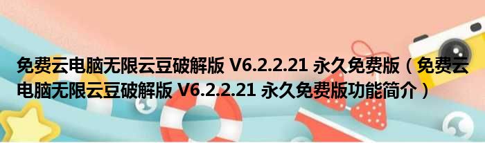 免费云电脑无限云豆破解版 V6.2.2.21 永久免费版(免费云电脑无限云豆破解版 V6.2.2.21 永久免费版功能简介)