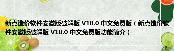 新点造价软件安徽版破解版 V10.0 中文免费版(新点造价软件安徽版破解版 V10.0 中文免费版功能简介)