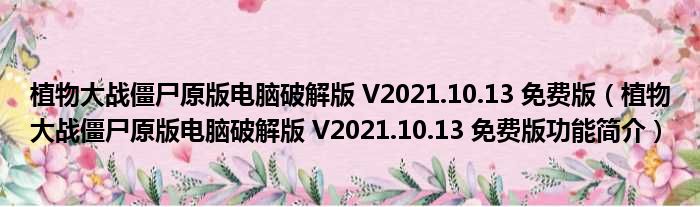 植物大战僵尸原版电脑破解版 V2021.10.13 免费版(植物大战僵尸原版电脑破解版 V2021.10.13 免费版功能简介)