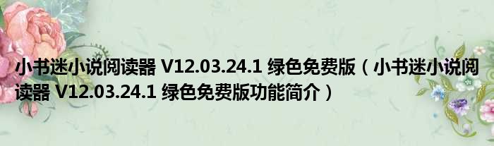 小书迷小说阅读器 V12.03.24.1 绿色免费版(小书迷小说阅读器 V12.03.24.1 绿色免费版功能简介)