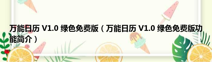 万能日历 V1.0 绿色免费版(万能日历 V1.0 绿色免费版功能简介)
