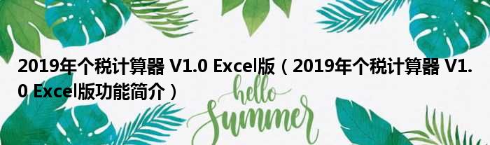 2019年个税计算器 V1.0 Excel版(2019年个税计算器 V1.0 Excel版功能简介)