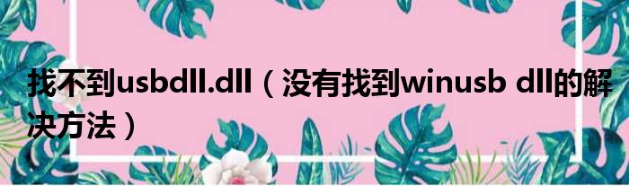 导读 大家好,今天小六子来为大家解答以下的问题,关于找不到usbdll dll,没有找到winusb dll的解决方法这个很多人还不知道,现在让我们一起来看