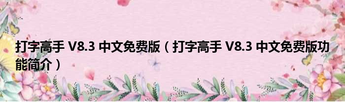 打字高手 V8.3 中文免费版(打字高手 V8.3 中文免费版功能简介)
