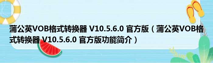 蒲公英VOB格式转换器 V10.5.6.0 官方版(蒲公英VOB格式转换器 V10.5.6.0 官方版功能简介)