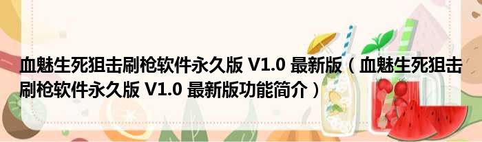 血魅生死狙击刷枪软件永久版 V1.0 最新版(血魅生死狙击刷枪软件永久版 V1.0 最新版功能简介)