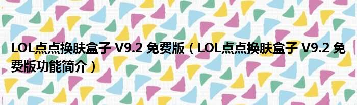 LOL点点换肤盒子 V9.2 免费版(LOL点点换肤盒子 V9.2 免费版功能简介)