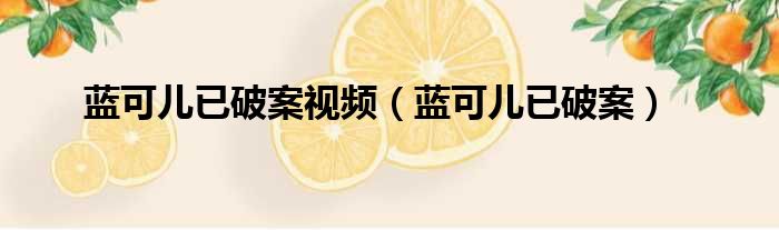 大家好,今天小六子来为大家解答以下的问题,关于蓝可儿已破案视频,蓝可儿已破案这个很多人还不知道,现在让我们一起来看看吧!