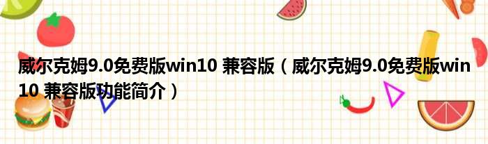 威尔克姆9.0免费版win10 兼容版(威尔克姆9.0免费版win10 兼容版功能简介)