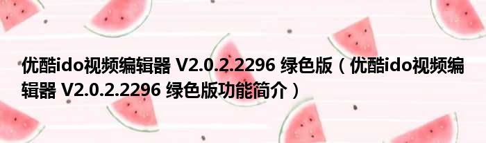 优酷ido视频编辑器 V2.0.2.2296 绿色版(优酷ido视频编辑器 V2.0.2.2296 绿色版功能简介)