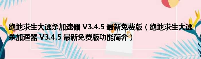 导读 大家好,关于绝地求生大逃杀加速器 V3 4 5 最新免费版,绝地求生大逃杀加速器 V3 4 5 最新免费版功能简介这个很多人还不知道,小勒来为大