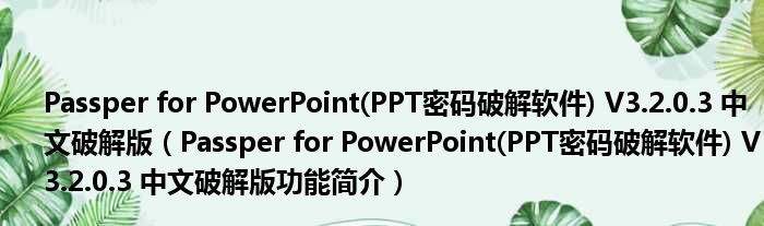 Passper for PowerPoint(PPT密码破解软件) V3.2.0.3 中文破解版(Passper for PowerPoint(PPT密码破解软件) V3.2.0.3 中文破解版功能简介)