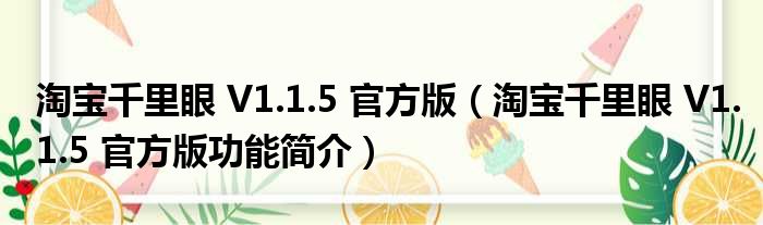 淘宝千里眼 V1.1.5 官方版(淘宝千里眼 V1.1.5 官方版功能简介)