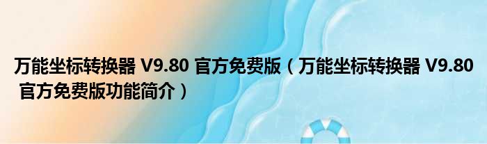 导读 大家好,关于万能坐标转换器 V9 80 官方免费版,万能坐标转换器 V9 80 官方免费版功能简介这个很多人还不知道,小勒来为大家解答以上的问