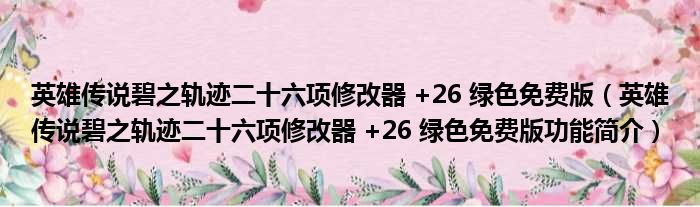 英雄传说碧之轨迹二十六项修改器 +26 绿色免费版(英雄传说碧之轨迹二十六项修改器 +26 绿色免费版功能简介)