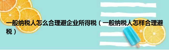 一般纳税人怎么合理避企业所得税(一般纳税人怎样合理避税)