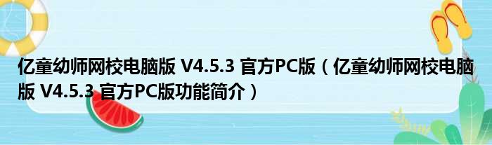 导读 大家好,关于亿童幼师网校电脑版 V4 5 3 官方PC版,亿童幼师网校电脑版 V4 5 3 官方PC版功能简介这个很多人还不知道,小勒来为大家解答以