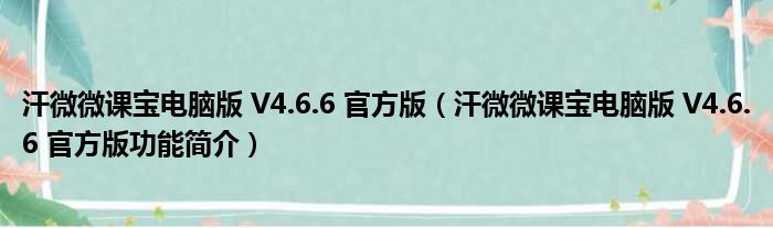 汗微微课宝电脑版 V4.6.6 官方版(汗微微课宝电脑版 V4.6.6 官方版功能简介)
