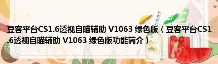 豆客平台CS1.6透视自瞄辅助 V1063 绿色版(豆客平台CS1.6透视自瞄辅助 V1063 绿色版功能简介)