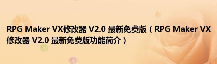 RPG Maker VX修改器 V2.0 最新免费版(RPG Maker VX修改器 V2.0 最新免费版功能简介)