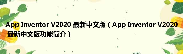 App Inventor V2020 最新中文版(App Inventor V2020 最新中文版功能简介)