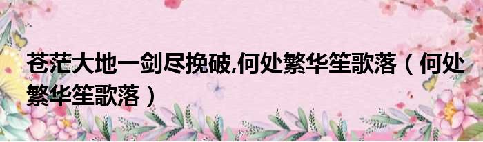 苍茫大地一剑尽挽破,何处繁华笙歌落(何处繁华笙歌落)
