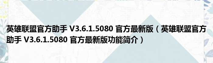导读 大家好,关于英雄联盟官方助手 V3 6 1 5080 官方最新版,英雄联盟官方助手 V3 6 1 5080 官方最新版功能简介这个很多人还不知道,小勒来为
