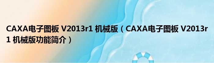 CAXA电子图板 V2013r1 机械版(CAXA电子图板 V2013r1 机械版功能简介)