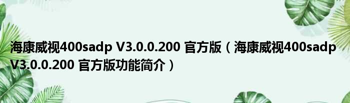 海康威视400sadp V3.0.0.200 官方版(海康威视400sadp V3.0.0.200 官方版功能简介)