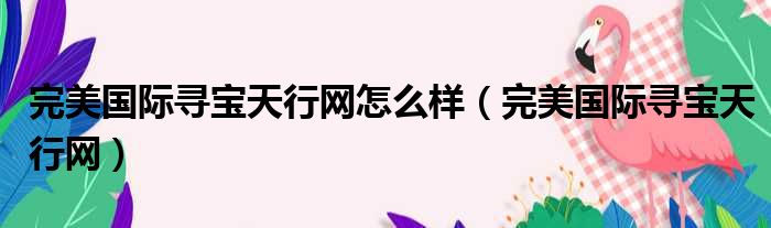 完美国际寻宝天行网怎么样(完美国际寻宝天行网)