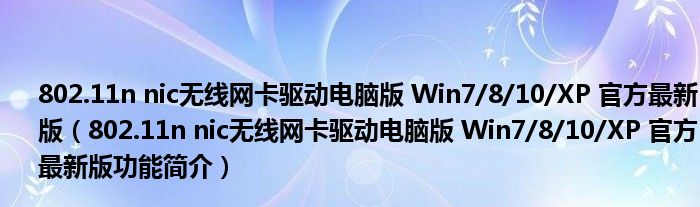 802.11n nic无线网卡驱动电脑版 Win7/8/10/XP 官方最新版(802.11n nic无线网卡驱动电脑版 Win7/8/10/XP 官方最新版功能简介)