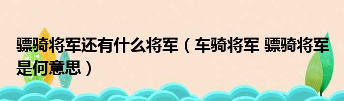 骠骑将军还有什么将军(车骑将军 骠骑将军 是何意思)