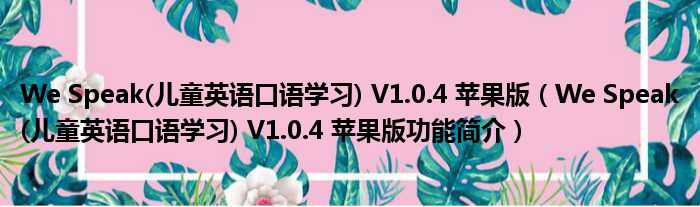 We Speak(儿童英语口语学习) V1.0.4 苹果版(We Speak(儿童英语口语学习) V1.0.4 苹果版功能简介)