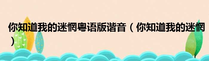 你知道我的迷惘粤语版谐音(你知道我的迷惘)